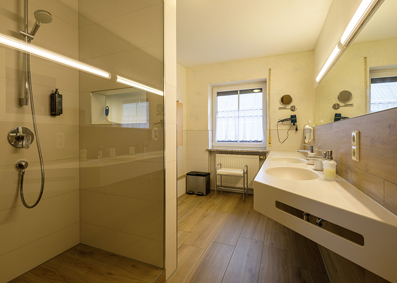 Two freshly renovated bathrooms for four people... Beauty care without waiting times. The apartment exudes luxury in every aspect. Two befriended couples will also feel comfortable here, as the apartment is equipped with two double bedrooms.